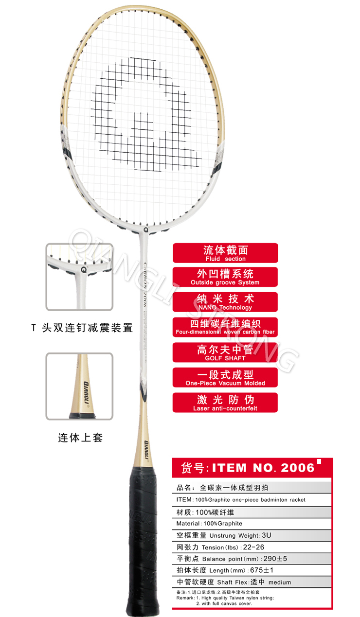 SZ 2006全碳素一體成型羽拍