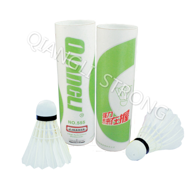 貨號:ITEM NO.555品名:筒裝羽毛球ITEM:feather shuttlecocks材質(zhì):鴨毛 + 發(fā)泡material:duck feather + Foam head備注:6粒/筒 50筒/箱remark:6pcs/tube.50tubes/ctn