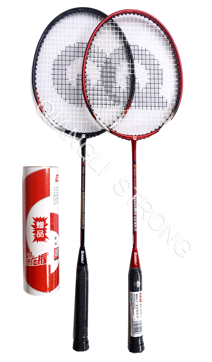 Remark:1.High quality Taiwan nylon string;2.2 rackets+6 plastic shuttlecocks with canvas full cover.