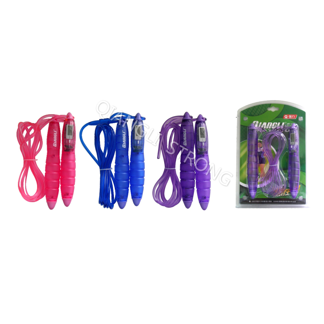 品名:電子計數(shù)跳繩ITEM:Digital jumping rope規(guī)格:2.8m Length:2.8m材質(zhì):ABS+PVC Material:ABS grip+PVC rope單條吸塑裝:48條/箱Packing:1 pc in blastic packing,48pcs/ctn